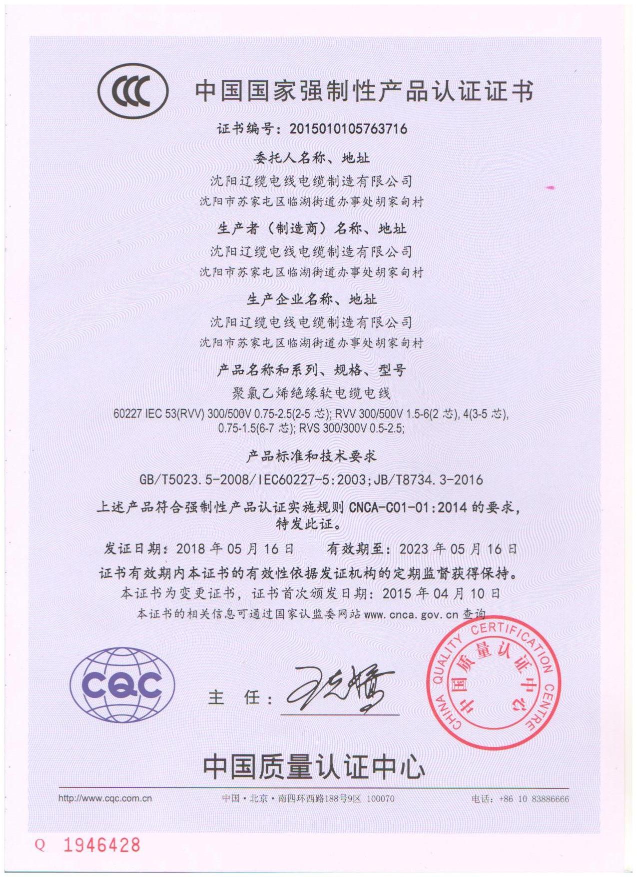 沈陽遼纜電線電纜公司資質
